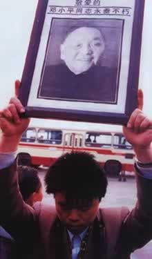 自发地聚集在一起向小平同志默哀1997年2月19日邓小平逝世,图为深圳市悼念一角
