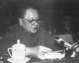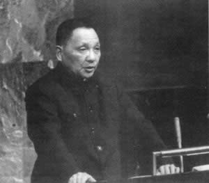 1966年『文化大革命』开始以后,失去一切领导职务。1969~1973年间下放到江西省新建县拖拉机修造厂劳动。1973年3月恢复国务院副总理职务。1974年4月代表中国政府出席联合国第六届特别会议,在会上系统地阐述了毛泽东关于三个世界划分的理论。他主持起草了周恩来在第四届全国人民代表大会第一次会议上的《政府工作报告》。1975年1月任中共中央副主席、国务院副总理、中央军委副主席和中国人民解放军总参谋长。由于『四人帮』的诬陷,1976年4月又被撤销一切职务。