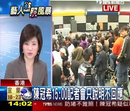 2008年2月21日,在全中国引发舆论轰动的『艳照门』事件男主角、香港艺人陈冠希现身发表声明。他做出的『退出香港娱乐圈』的决定不仅让许多中国人哗然,也成为了国外媒体纷纷报道的『中国焦点新闻』。