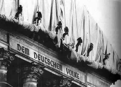 1994年2月25日,德国国会对《包装国会大厦——柏林计划》以292票赞成、229票反对的结果通过。1995年6月17日至27日,正值二战结束50周年之际,由艺术家克里斯多和珍娜·克劳德夫妇在柏林实施了这一计划。这神奇的设想变为现实的时刻,全世界数以万计的参观者在艺术包裹的建筑前留影。昔日作为象征纳粹第三帝国最后堡垒濒临崩溃时,它已是座废墟。战后,由苏、英两军分而治之,成为长年名存实亡的死楼。60年代又重新修整。在两德统一后。柏林将成为首都,昔日的帝国大厦又重新成为德国国会大厦。在这新旧历史交替之时,这一计划,为一个新的德国增添了光彩。