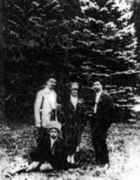 1927年冬,邓演达(右一)与宋庆龄(中)、王人达(前坐)等在南俄合影