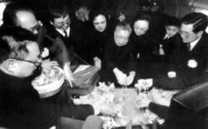 邓小平的子女捧着邓小平的画像、骨灰和花圈缓步走出怀仁堂 1997年3月2日上午。