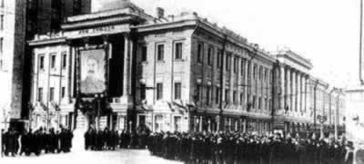 向斯大林遗体告别的人们排成延续6英里的长队