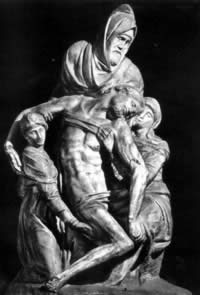 《哀悼基督》又称《十字架上取下耶酥》,作于1548年~1555年间,是米开朗基罗晚期重要的雕刻作品。