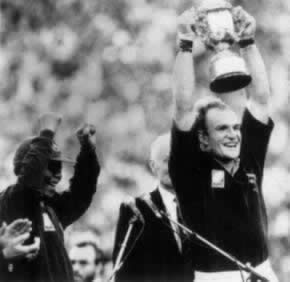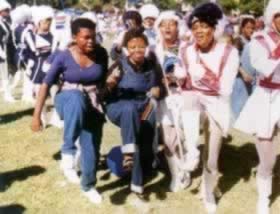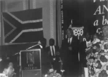 非国大在南非首次全民大选中获胜,曼德拉乐不自禁,欣然起舞。