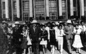 1990年,江泽民、李鹏、王震等到天安门广场和小朋友一起参加『六一』国际儿童节联欢会