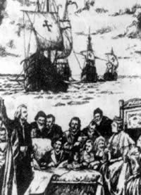 1486年,航海家哥伦布向西班牙国王提出一个大胆的主张,认为按照地圆说,从大西洋向西航行,可以到达中国和印度。这要比东航为近。1492年4月,女王伊萨伯拉与其丈夫斐迪南国王采纳了他的建议。派他以王室名义寻找通向东方的航路,授予他『海军大将』军衔,预封他为『新发现土地』的『世袭总督』。
