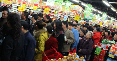 西鹰潭市民加入抢购食盐的队伍受日本大地震影响,中国部分地区3月16日开始发生食盐抢购现象。为确保食盐市场稳定供应,中国盐业总公司向全国各省、自治区、直辖市及计划单列市发出紧急通知。通知称,各级盐业公司对