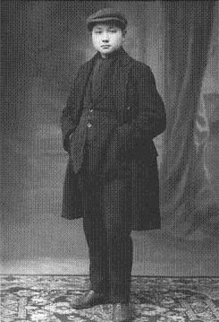 赴法留学生合影。吴玉章(椅上坐者右4),最近排右1为前来送行的毛泽东