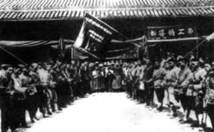 1927年3月21日, 上海工人发动第三次武装起义。武装起义由中共中央军委书记兼江浙区军委书记周恩来任总指挥,同中共江浙区委负责人罗亦农、赵世炎一起负责领导工作。为确保武装起义胜利,上海区委组织5000人的纠察队,秘密进行政治、军事训练。派一部分工人打入敌人的『保卫团』,掌握一部分武器,借敌人的训练和装备,扩大工人纠察队的武装和军事素质。又在市民、特别是贫苦市民中进行广泛细致的政治工作。并根据敌人所在地区力量的强弱,划分了七个作战区域,规定了各区工人纠察队的任务,将敌人兵力较强的闸北区作为起义进攻的重点区。起义前十天,铁路工人中断了铁路运输,使北洋军阀在上海的警备司令毕庶澄部3000人和当地警察2000人处于孤立无援的境地。