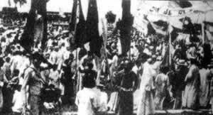 上海特别市临时市政府。23日召开第一次执行委员常务会议时合影。右起,前排:汪寿华(共产党员)、杨杏佛、王晓籁、罗亦农(共产党员)、王景云、何洛;后排:王汉良、丁晓先、郑毓秀(女)、顾顺章(共产党员,后叛变)、侯绍裘(共产党员)、林钧(共产党员)