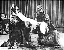 谭鑫培、谭富英祖孙二位,还有两桩凑巧的事:一则是,谭鑫培先生于1905年,应邀拍摄了第一部京剧无声影片《定军山》的几个片断;谭富英先生于1933年,应邀与名旦雪艳琴合拍了第一部京剧有声电影片《四郎探母》全剧。祖孙二人占了京剧影片之首。再则为:今年正巧是谭鑫培先生逝世80周年;谭富英先生去世整整20周年之期,忆及20年前谭富英先生遗体告别仪式上的一副挽联: