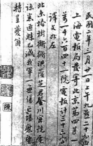 赵秉钧交给应夔丞联络密码的手令
