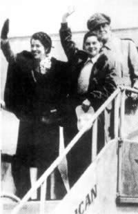 与妻子琼和儿子阿瑟从朝鲜回到美国,总算有了安全感。