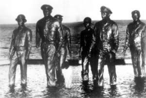 为纪念麦克瑟1944年在菲律宾登陆,后人在江滩建造了这组雕塑。