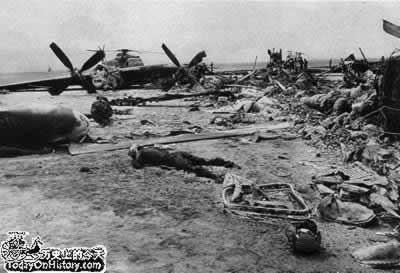 沙漠上留下了他们烧焦的飞机残骸和队友的尸体