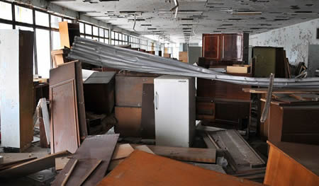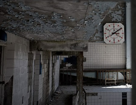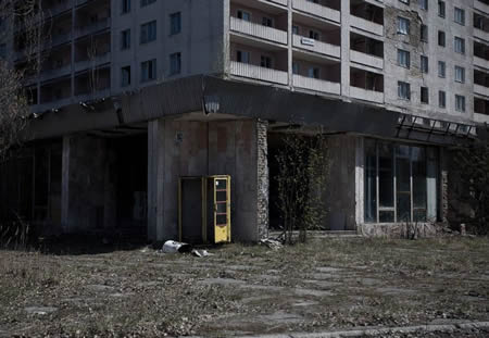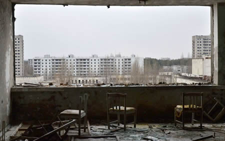 2011年4月26日是这起核事故25周年纪念日,但核电站及其周围城镇依然保持着灾难发生时的情景,宛如一座座鬼城,这里的时间仿佛已经静止。图中是距离切尔诺贝利核电站最近的普里皮亚季镇,一栋废弃建筑中依然保存当年的情景。灾难发生后,成千上万人的生命受到威胁,森林和农田遭到污染。爆炸释放的核辐射是美国广岛原子弹释放的和辐射量的400倍。