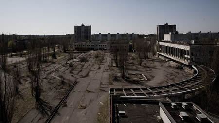 站在普里皮亚季镇一座旅馆的顶楼上向远处看,这座小镇当初是为了方便切尔诺贝利核电站中的工人建造的。现在,科学家们依然在争论到底有多少人死于这场核污染事故。