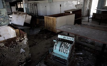 时间倒流:普里皮亚季镇一所学校小卖部中,收银机已经被严重腐蚀。