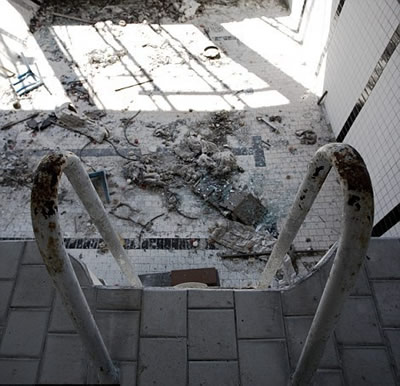 切尔诺贝利核电站中的休闲娱乐中心,水池中的水经过25年的蒸发已经干涸。