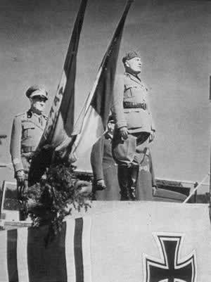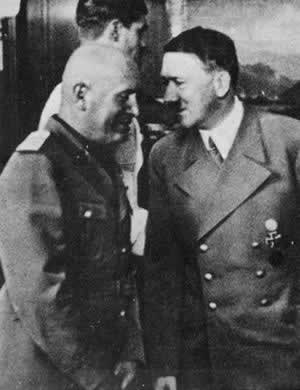 从30年代中期开始,墨索里尼把魔掌伸向意大利以外的国家。他发动入侵埃塞俄比亚的战争,并同其他国右翼政府结成联盟,其中包括佛朗哥的西班牙政府,当然,也有德国的希特勒政府。意大利是在1940年德国征服法国,似乎就要赢得整个欧洲的时候,宣告参战的。