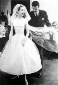奥黛丽试穿设计师吉文齐设计的婚纱
