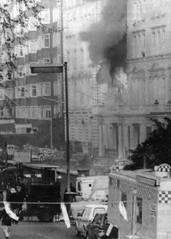 1980年5月5日,英国突击队员与警察冲开一条路打进伊朗大使馆营救5天半前被扣押在那里的人质,战区的爆炸声与枪炮声扰乱了伦敦的幽寂。
