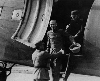 蒋介石走下飞机