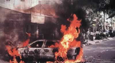 2月10日前后,印尼爪哇发生骚乱,一些商店被砸抢、烧毁。3月底,已经持续月余的印尼街头反政府示威愈演愈烈。5月中旬,印尼骚乱升级,一些人开始抢劫、纵火。5月6日,印尼雅加达一家商场被人纵火,至少有110人葬身火海。5月15日,鉴于国内的紧张局势,正在埃及访问的印尼总统苏哈托提前回国。21日,苏哈托下台,哈比比接任总统。