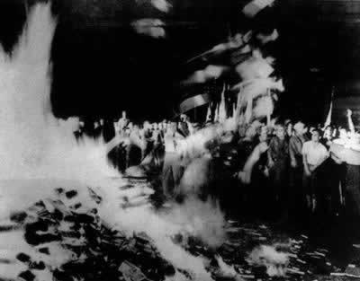 1933年5月10日晚,在柏林大学前点燃了一堆巨大的篝火。烧的不是原木,也不是煤油,而是书。这些书被纳粹分子定为是『非日尔曼的』东西。昨天,在慕尼黑,数千名学生观看了焚烧那些被认为是马克思主义的书。『当你看