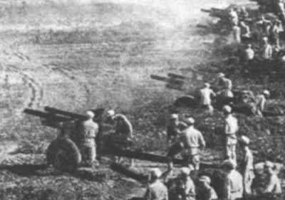 上海外围战斗中的解放军火炮向敌阵地轰击