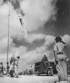 1948年5月14日,在英国发表犹太人有权在巴勒斯坦建立民族家园的『贝尔福宣言』31年后,在英国对巴勒斯坦的托管结束后一小时内,戴维-本-古里安宣布以色列国成立,并就任新国家的临时政府总理,多年来作为犹太复国主义事业化身的查伊姆-魏茨曼被提名担任该国首任总统。 犹太复国主义从纳粹统治时期对犹太人进行的种族灭绝的迫害中汲取了巨大的力量,但是以色列降生时出现了阵痛。犹太人和阿拉伯人双方都犯下了恐怖主义暴行,如1946年恐怖组织伊尔贡爆炸耶路撤冷大卫王饭店的事件以及1948年在同一城市阿拉伯人组织的爆炸事件,引起了局势动荡。伊尔贡组织在德尔亚辛村进行屠杀后,阿拉伯人大批逃离,从此播下了日后巴勒斯坦难民问题的种子。 国际上很快就对以色列宣告独立作出反应。杜鲁门总统立即承认临时政府,斯大林也予以承认。埃及、叙利亚、黎巴嫩、伊拉克和约旦迅即动员军队来对付这个新国家,发动了第一次中东战争,但阿拉伯军的进攻没有协调一致,这年末,兵力已达10万人的以色列军队取得了决定性胜利。