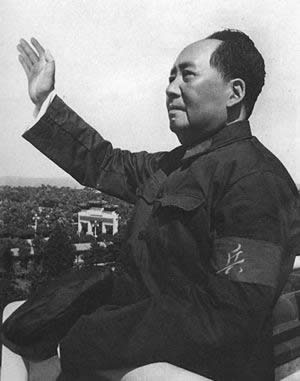 1966年8月18日毛泽东佩戴红卫兵袖章,在北京城楼首次检阅红卫兵。