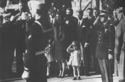 未满三周岁的儿子小约翰正在向肯尼迪的灵柩致以最后的敬意