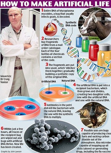 名为『人造儿』的人造细菌内核是移植于实验室、完全人工合成的基因组。凡特博士表示这意味着『一个新时代的到来』。