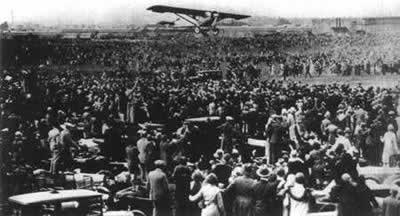 其他人也曾飞过大西洋,但是没有一个人能比这位身材瘦长、说话温柔、25岁的飞行员更能引起公众的注意。当他的瑞安式NYP单翼飞机『圣路易斯精神』号经过长达33个多小时,距离3600英里的运行着陆后,人群吞没了林白和他的飞机。两个中队的法国士兵都无法阻挡他们。林白出生于底特律,在明尼苏达长大。他是一个典型的美国中西部人。他弄不明白人们为什么要如此大惊小怪。况且他不能肯定自己一定喜欢这样的场面。仅仅在几周以前,当人们展开争夺从纽约到巴黎的首次不着陆飞越大西洋而设立的2.5万美元奖金时,林白还是一匹实力未明的黑马,只有他的支持者--圣路易斯实业家们相信他会成功。他大胆地从加利福尼亚直飞纽约,企图在所有的对手中夺魁。林白5月20日黎明从长岛的罗斯福机场起飞。这次飞行在两个大陆都成为头版消息。由于他的飞行汽油过重,飞起来就象一只喝醉的海鸥,差点擦上跑道终端的树梢。