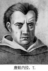 康帕内拉(1568~1639)意大利文艺复兴时期的空想社会主义者,哲学家,作家。1568年9月5日生于意大利南部,1639年5月21日卒于法国巴黎。1582年入多米尼克会。1591~1597年,因发表反宗教著作3次被捕,先后坐牢6年。