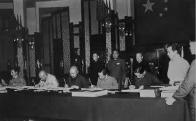 西藏地方政府全权代表在《关于和平解放西藏办法的协议》上签字坐者第5人为阿沛·阿旺晋美