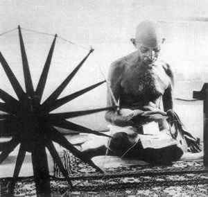 圣雄甘地倡导的纺车运动以抵制英货
