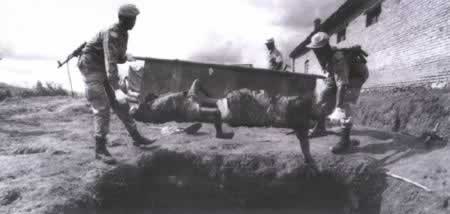 旺达军队的图西族士兵在凯伯雷难民营大肆屠杀胡图族人之后的惨象