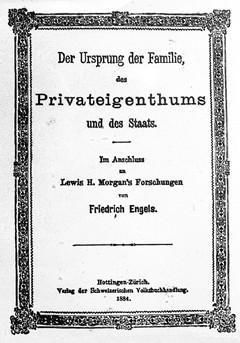 1884年10月03日,恩格斯《家庭、私有制和国家起源》一书发表。恩格斯以唯物史观阐释摩尔根的研究成果而提出:由于劳动生产率的发展,产生了私有财产,因此形成了阶级和阶级对立;由于各阶级的冲突导致以血亲家族为基