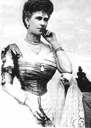 上图是英国的玛丽王妃,即嫁给日后的乔治五世玛丽王后,佩戴着柯利南钻石上切割下来的大颗钻石。柯利南大钻石是在1907年献给爱德华七世的,后被切割成几大块,其中最大一颗现在镶嵌在王室的宝杖上。